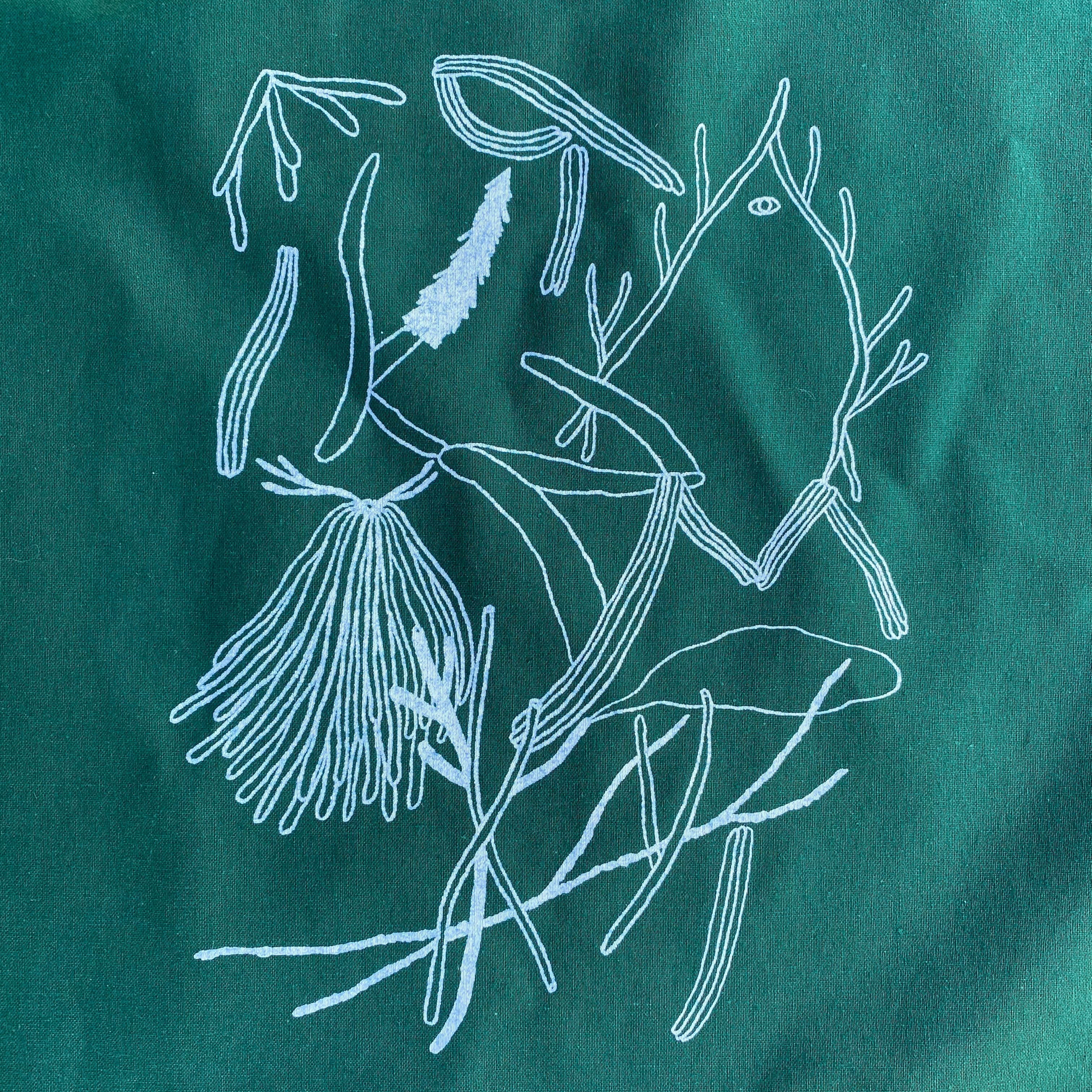 山梨のアーティストSAKURA FANTASMAとMARKING RECORDSのコラボレーショントートバッグ。すべて手刷りで刷っているため、一枚一枚の風合いが異なります。 こちらはフォレスト・グリーン色。薄手でくたっとした生地がかわいく、レコードが2〜3枚入ります。マチなし。折りたたんでの発送となります。 サイズ:(本体)約W370×H420mm (持ち手)約25×650mm 素材:コットン 厚み:約5oz